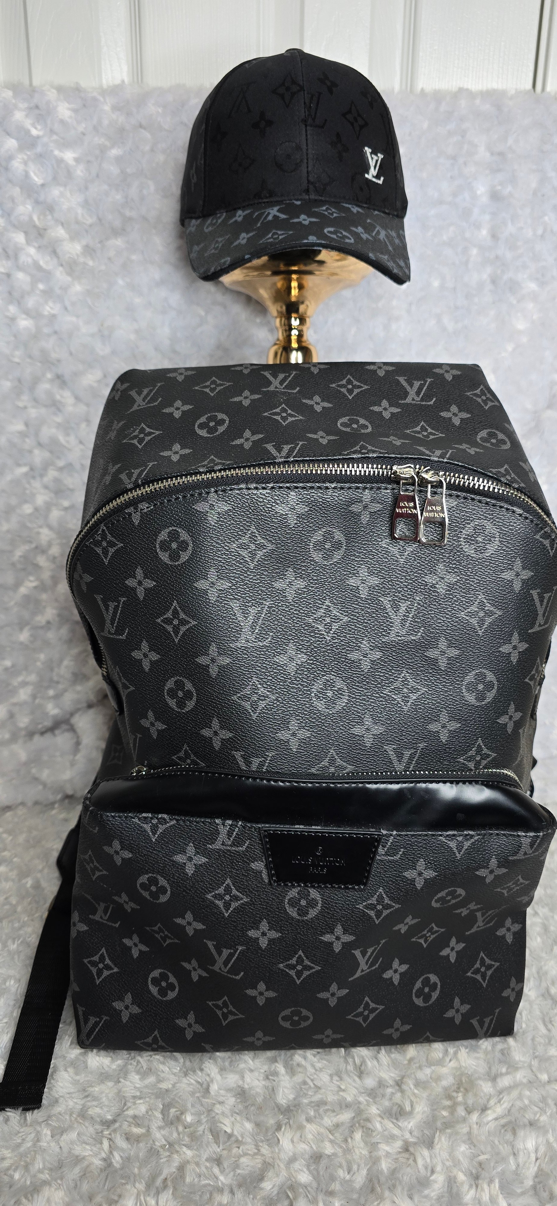 Black Extra Large Backpack and hat