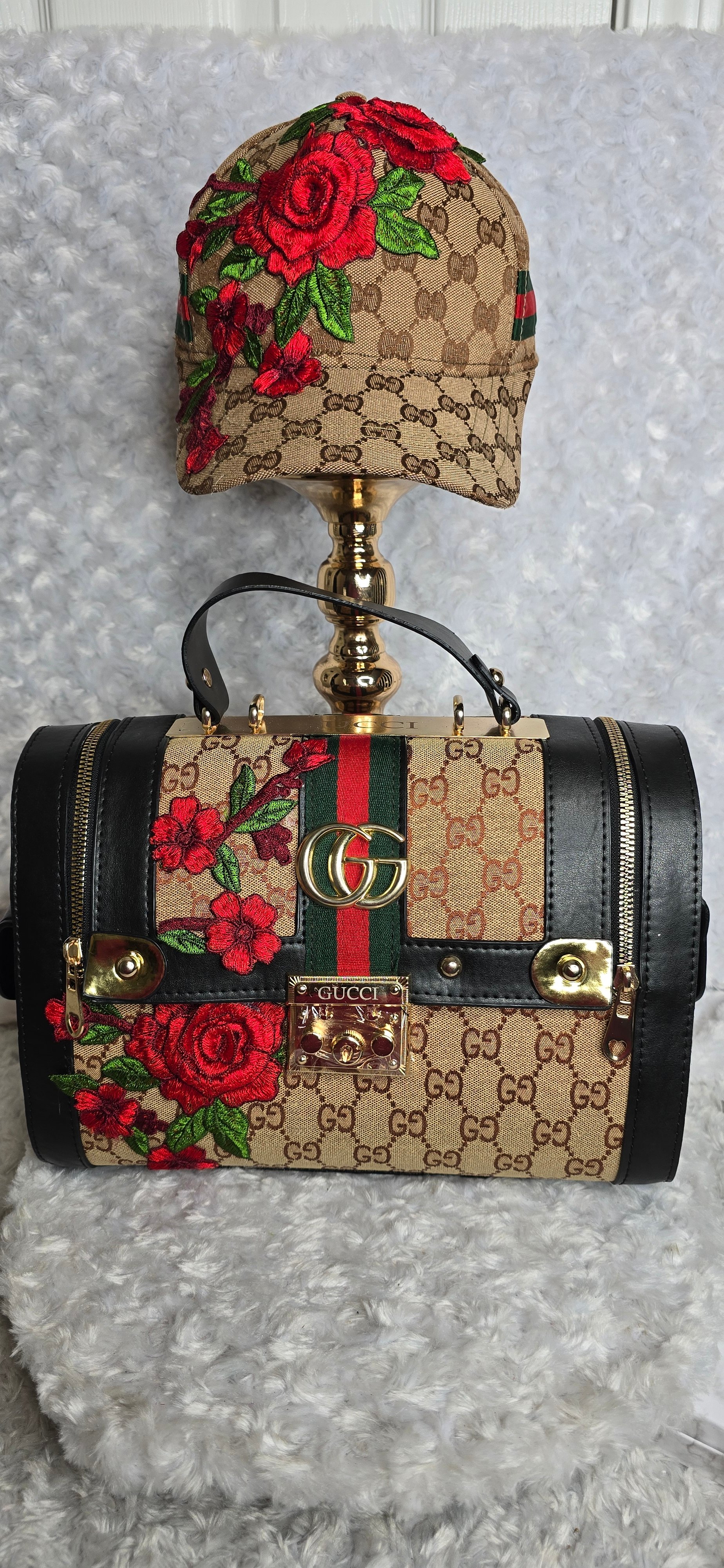 Brown Doctor Bag & hat w/ Roses