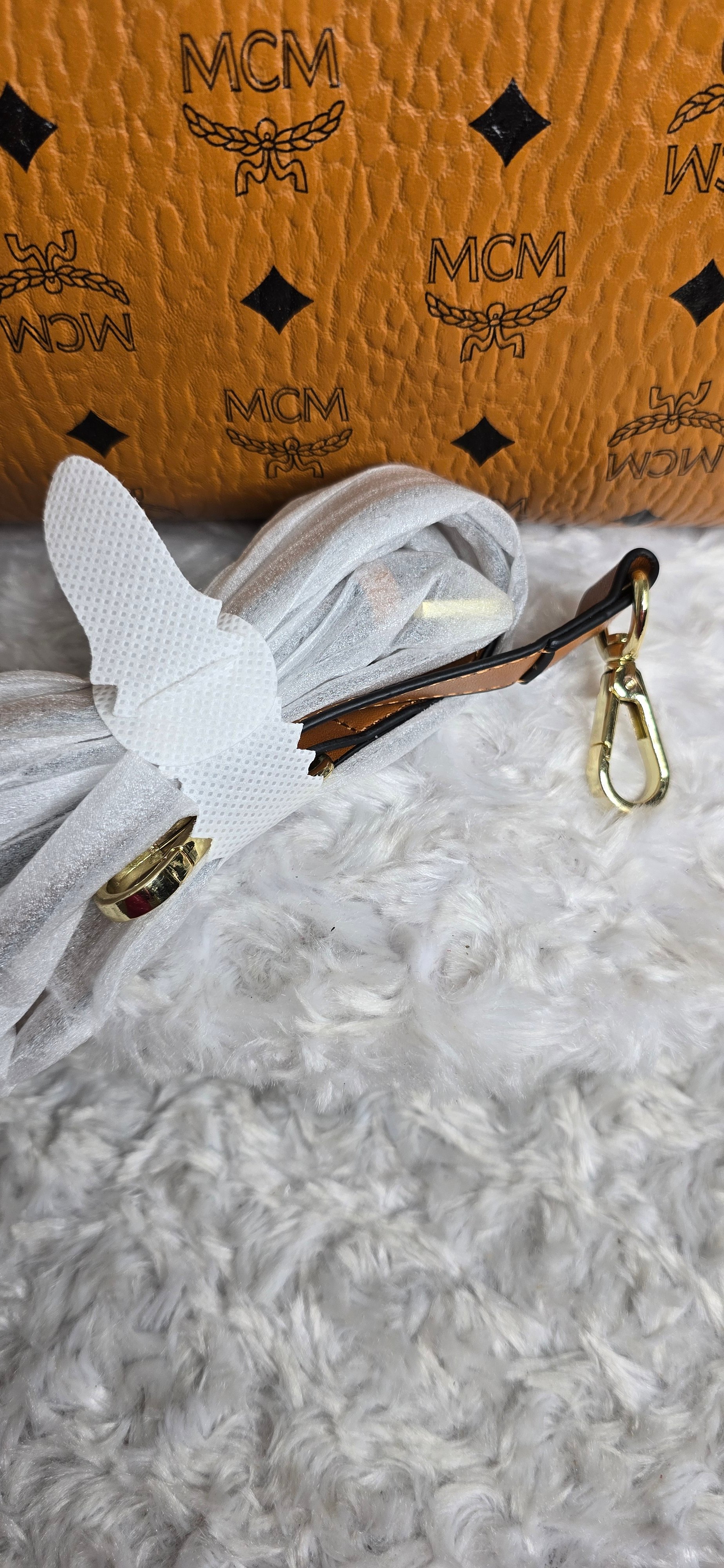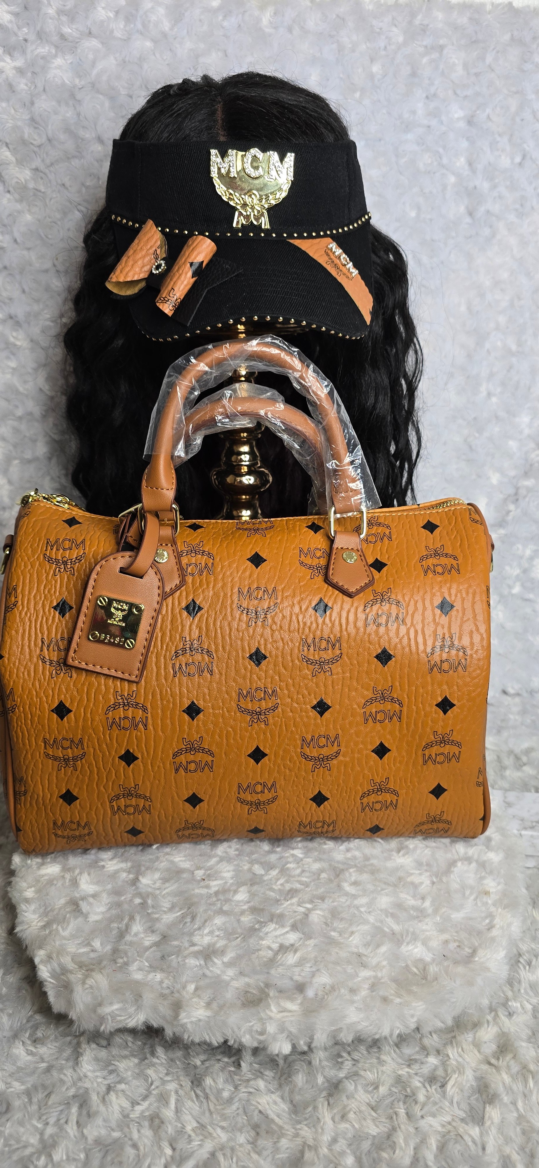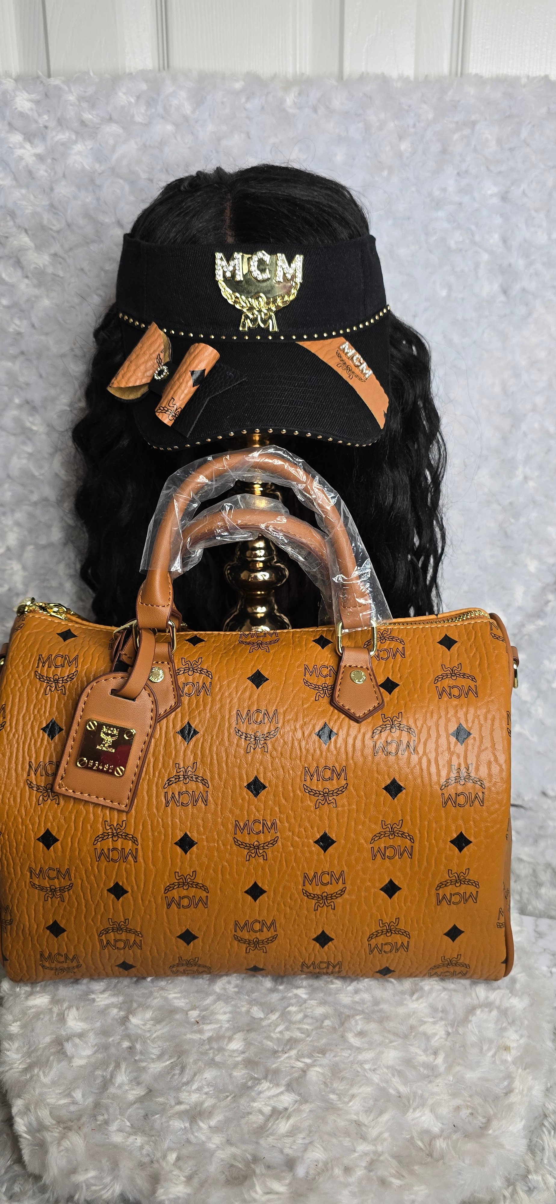 Brown Mackin Cutie Speedy & Visor comes with shoulder strap.