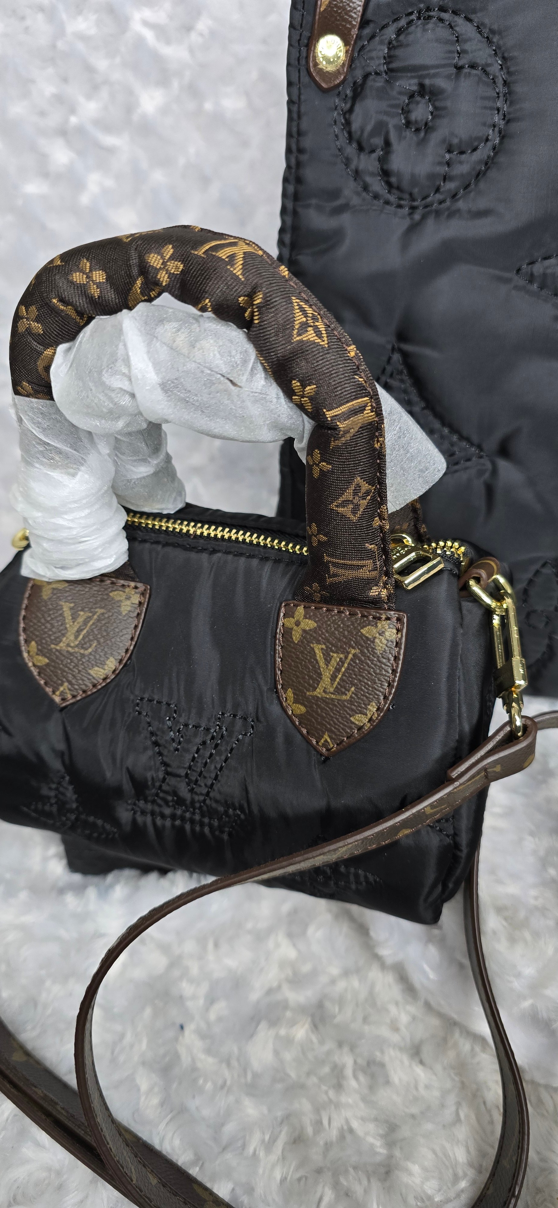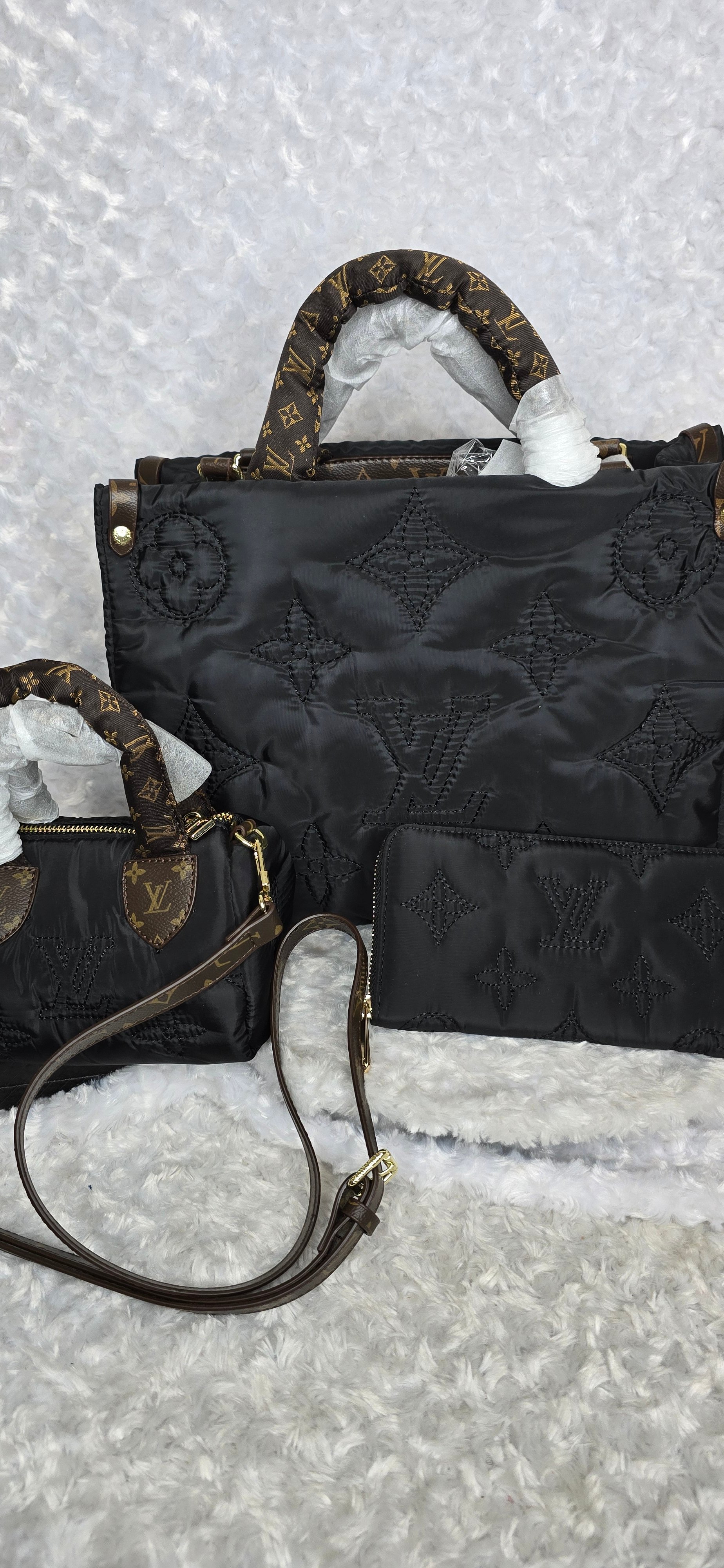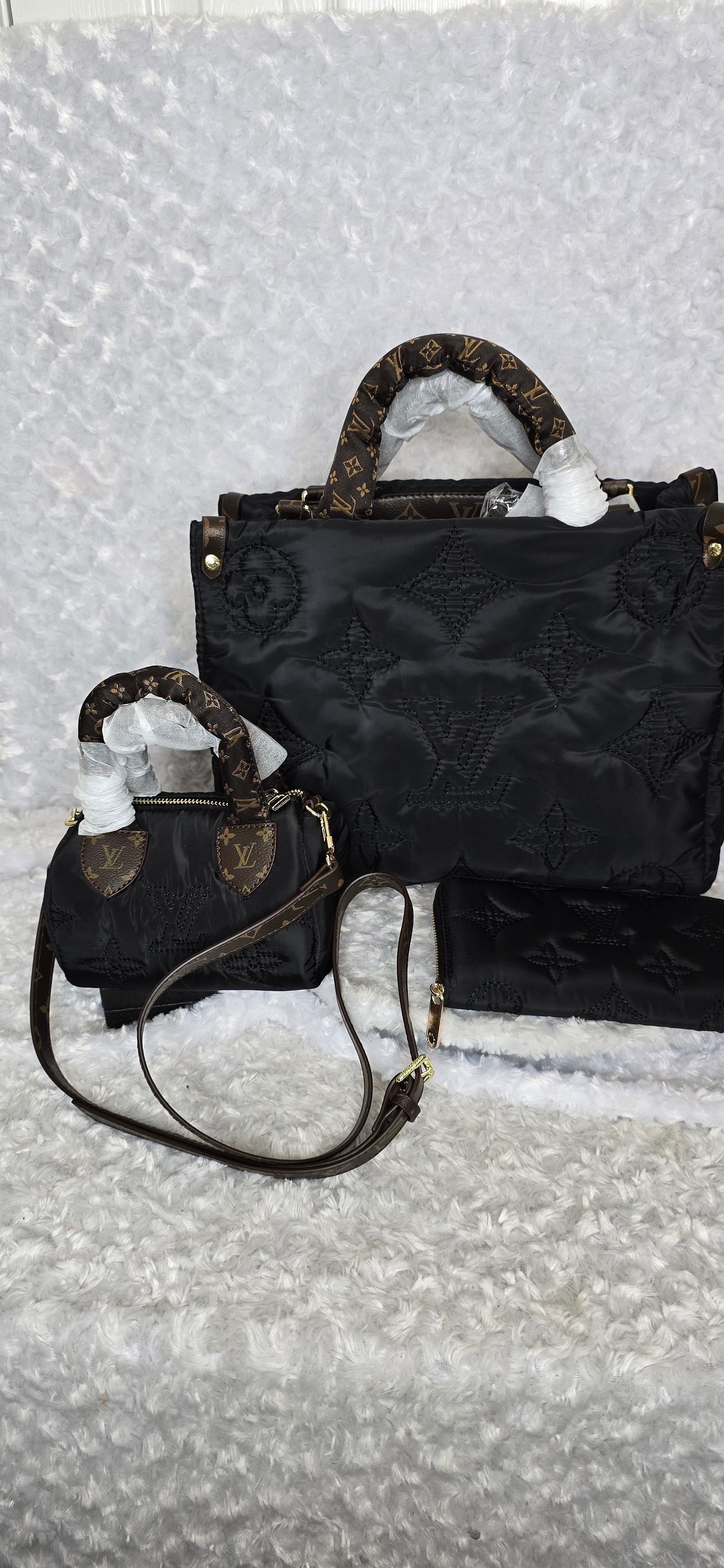 Black Puff OTG, mini speedy with strap and Long wallet. Top Grade premium