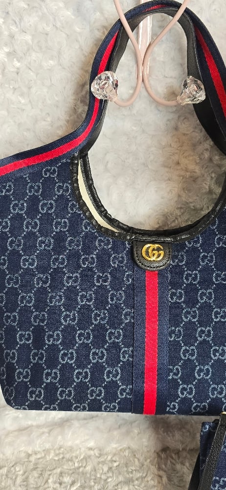 Dark denim Gorg girl Shoulder bag/ Matching hat. Includes additional matching clutch & Long canvas strap