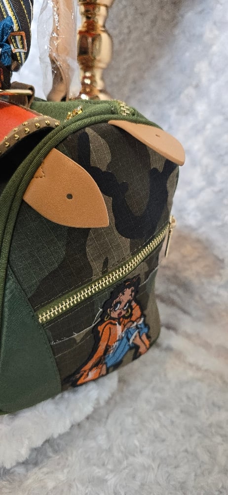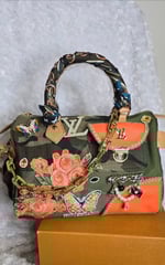 Orange & Camo speedy. Patches on both sides. Includes charm and scarf. Some patches may differ from above pictures.