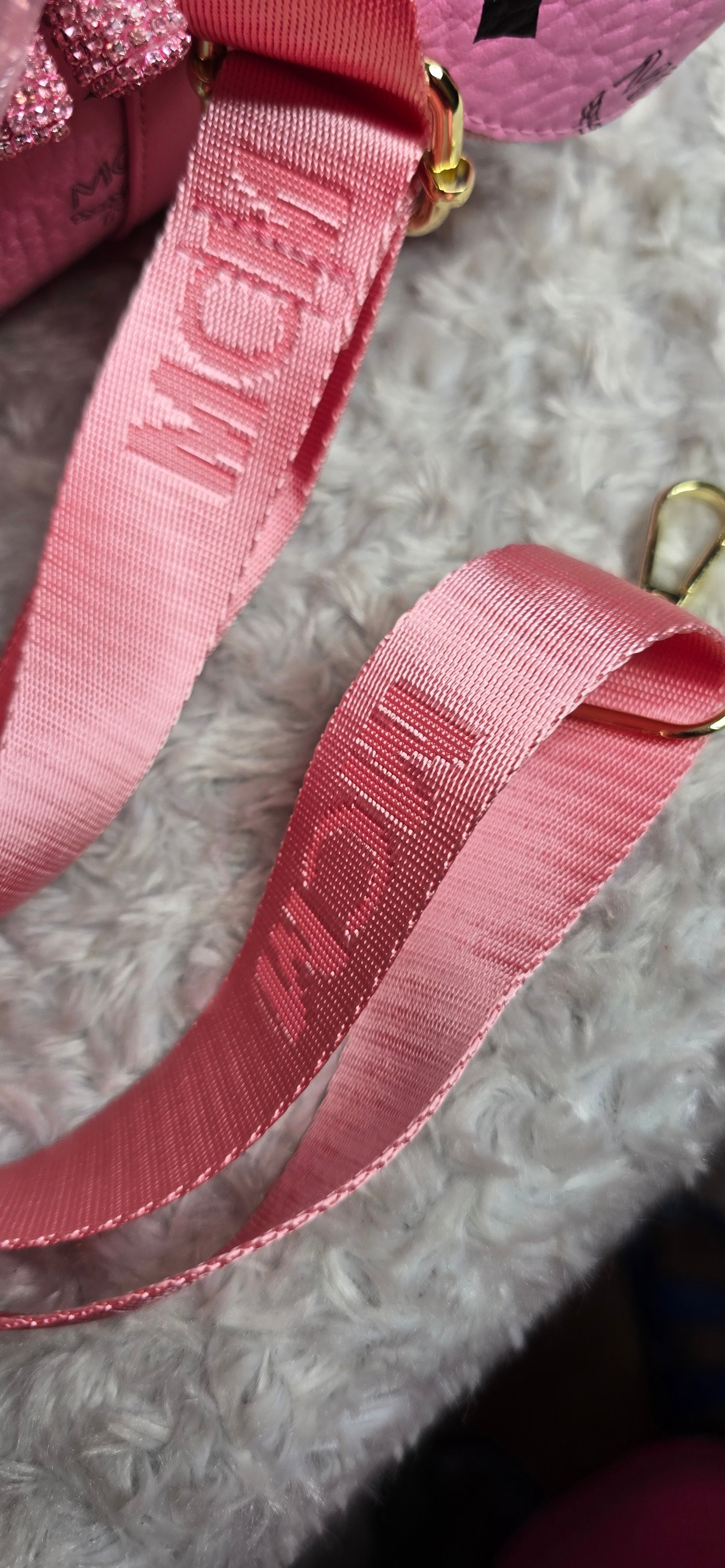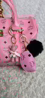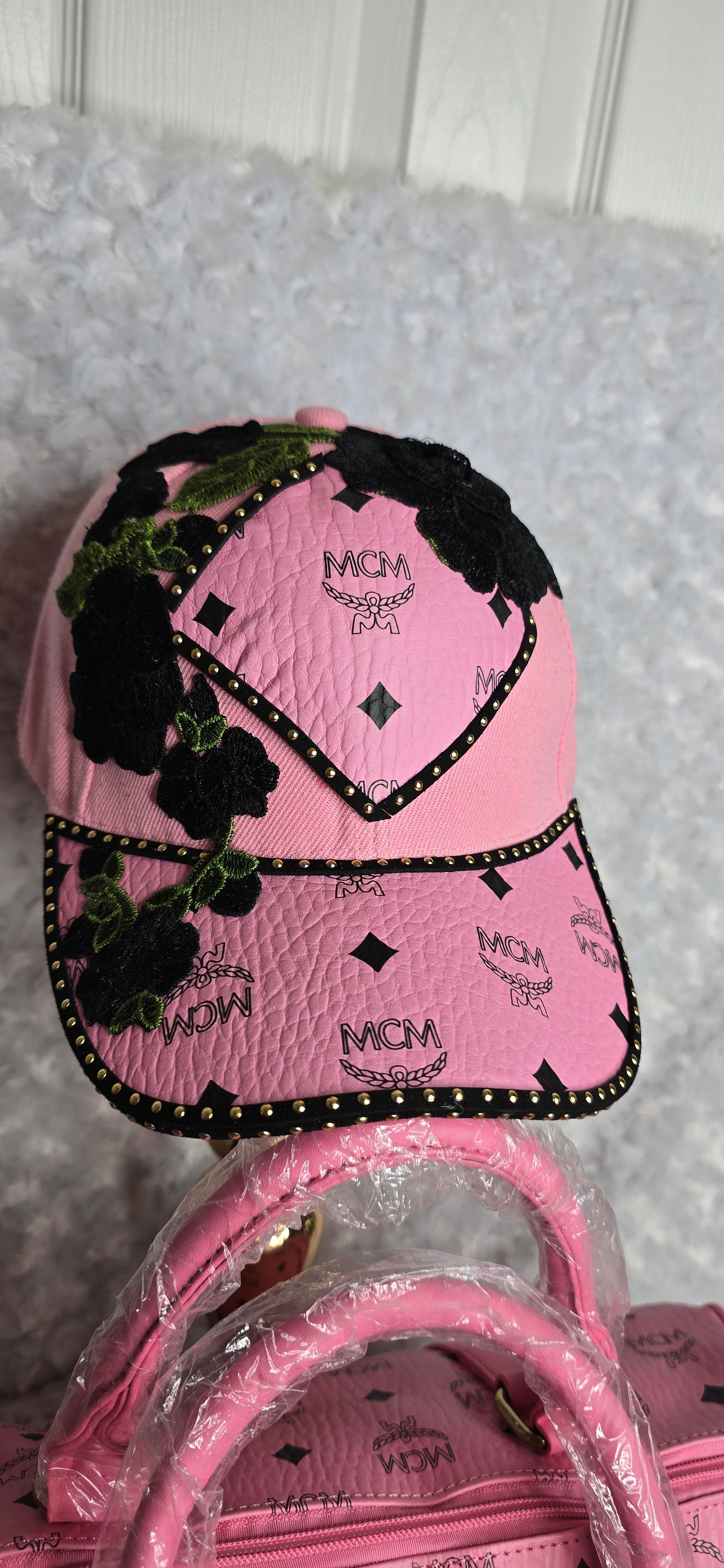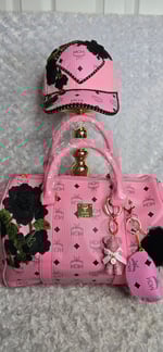 Pink Mackin Cutie Speedy & hat - black roses comes with crossbody strap, bag charms