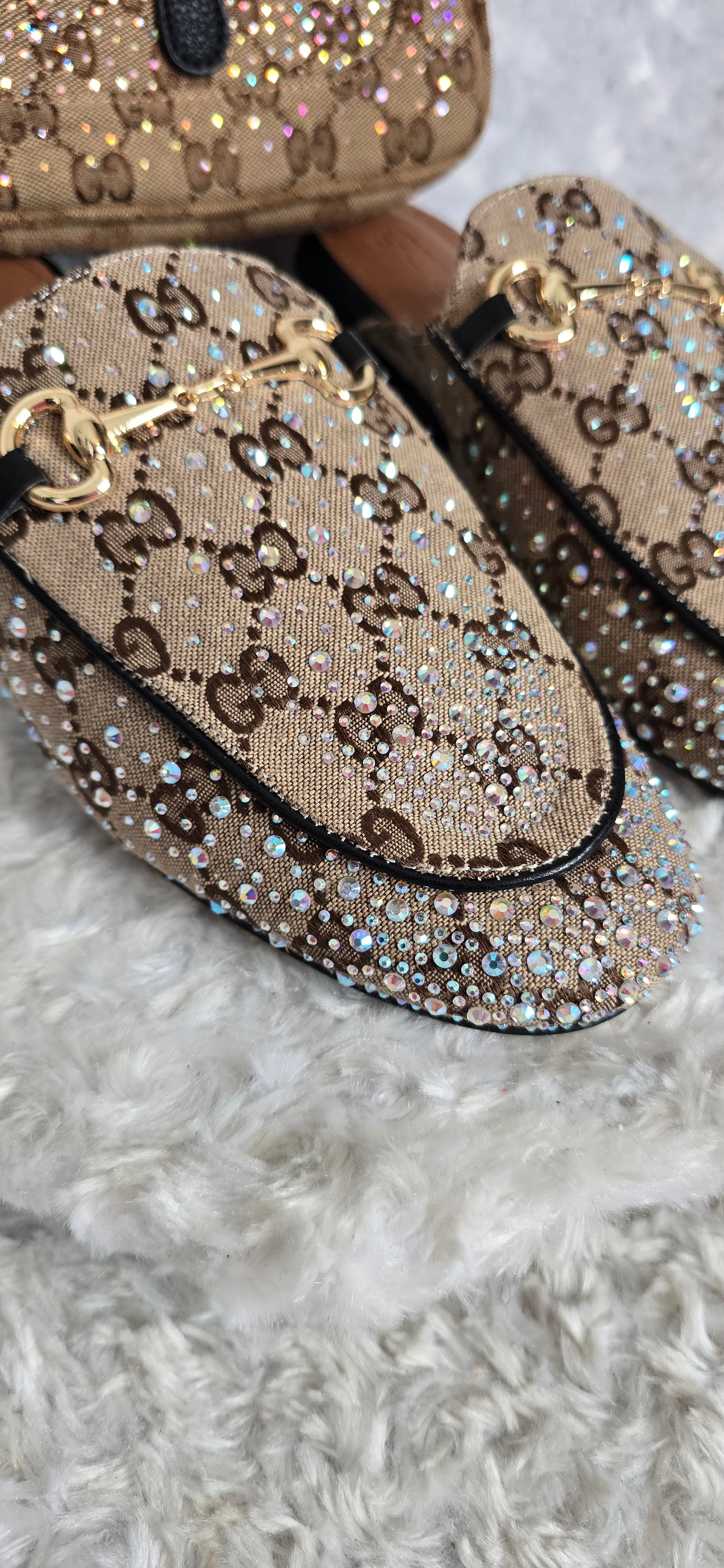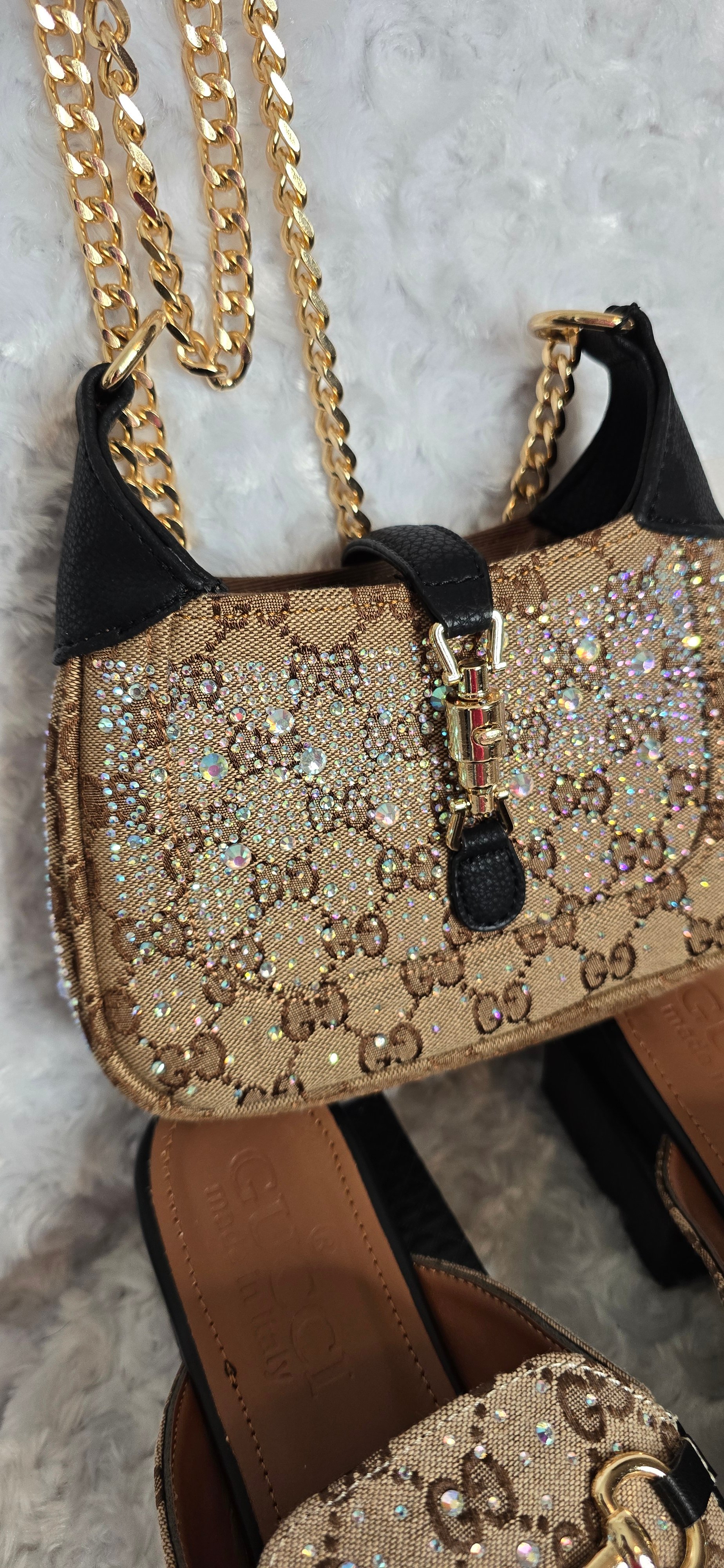 Size 7 Brown Gorg Girl Bling Mule sandals with matching Small Crossbody - Black trim